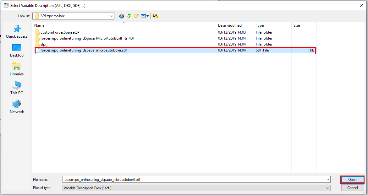 forcesmpc_onlinetuning_dSpace_MicroAutoBoxII.sdfin order to have access to the model variables and see the results of the execution (see Figure 6.12 and Figure 6.13).Click Finish to create the project (see Figure 6.14).